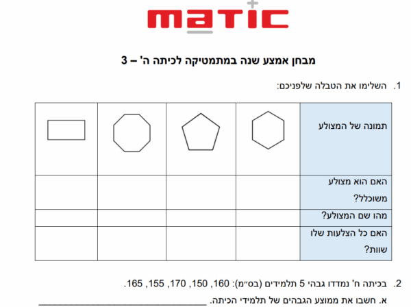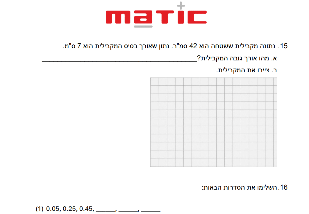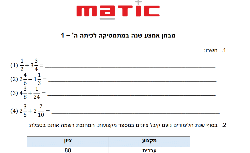 5 מבחנים במתמטיקה לכיתה ה' שנכתבו על-די צוות המומחים של מטיק מרכזי למידה.