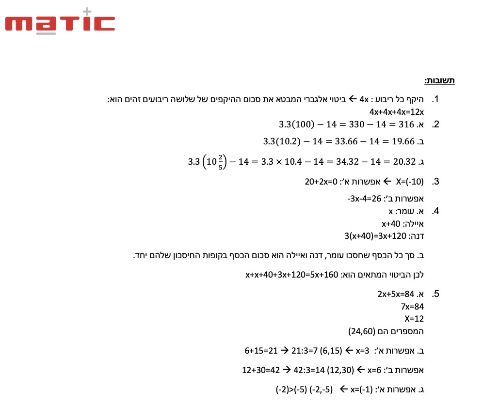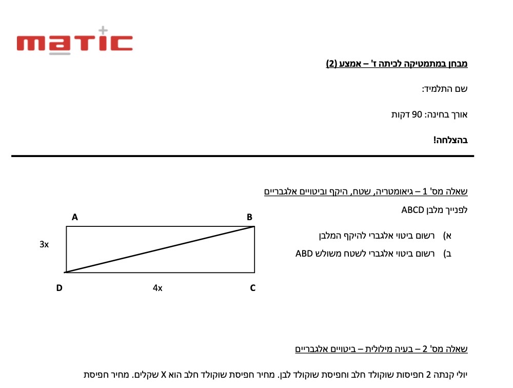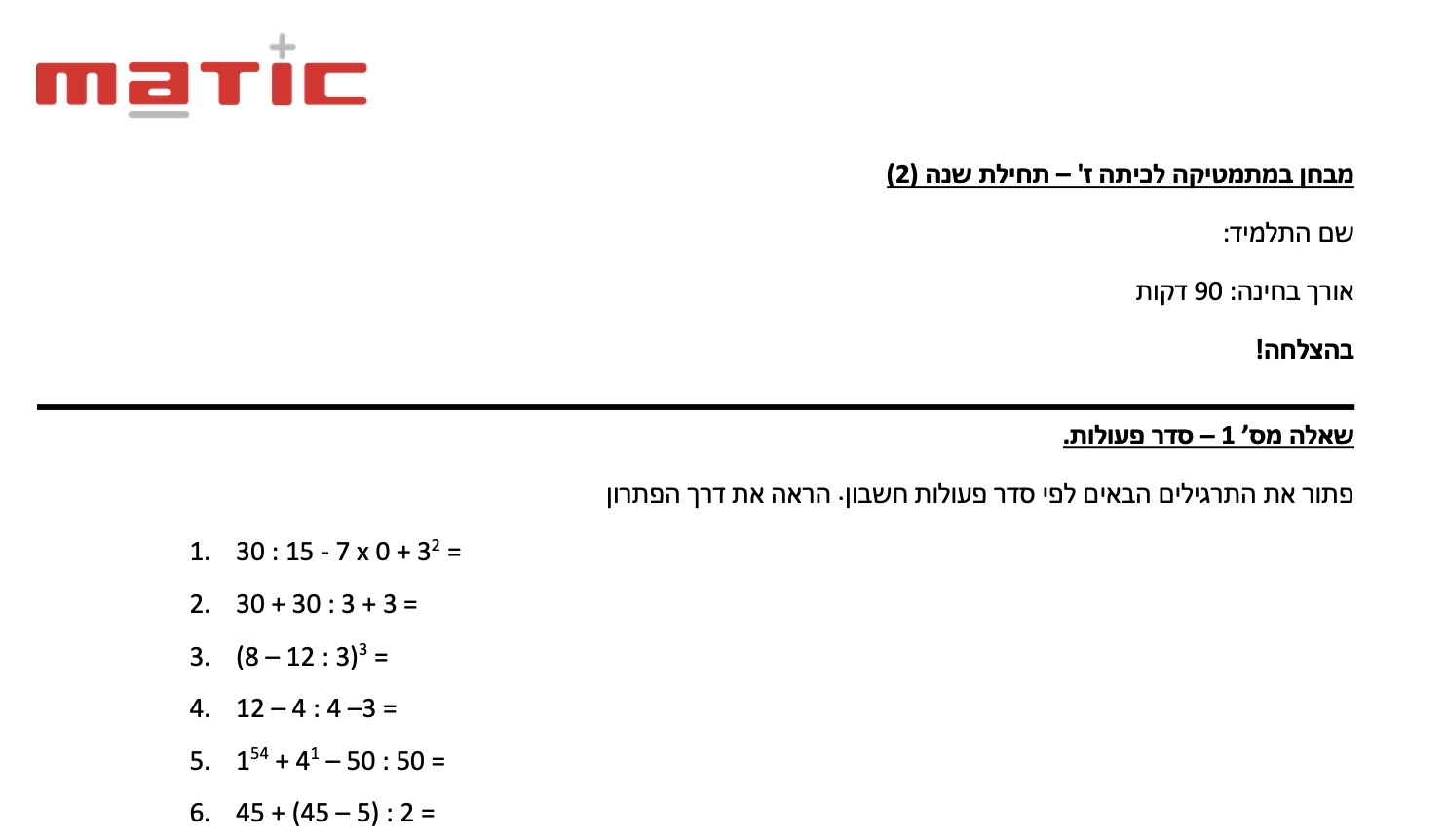 חבילות מבחנים מחולקות לשלבי השנה: תחילת שנה, אמצע שנה ומבחנים מסכמים נכתבו על-די צוות המומחים של מטיק מרכזי למידה.