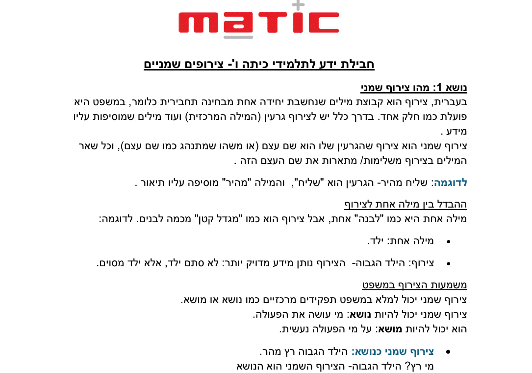 חבילה מסכמת בנושא צירופים שמניים לכיתה ו' שכתבו צוות המומחים של מטיק.